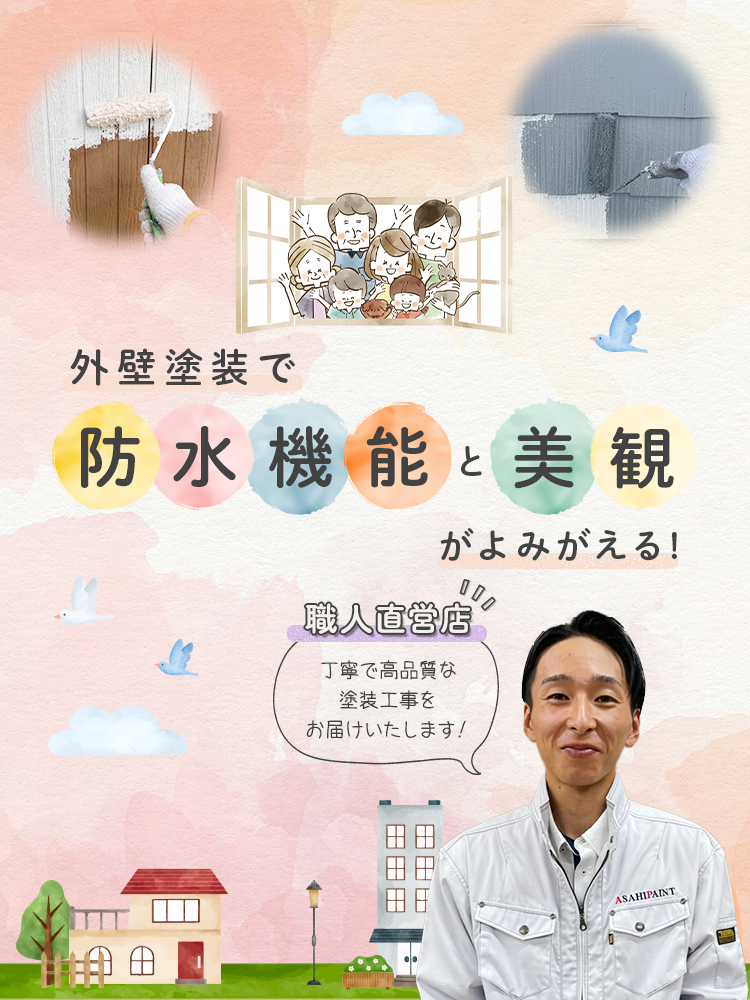 ASAHI PAINTは横浜市旭区に根付いた塗装屋。地元の皆さまに安心してご依頼いただけるよう、高品質で丁寧な施工をお届けしております。また、塗装工事が完了すればそれで終わりなのではなく、アフタフォローもしっかりしておりますので、施工後も安心です。